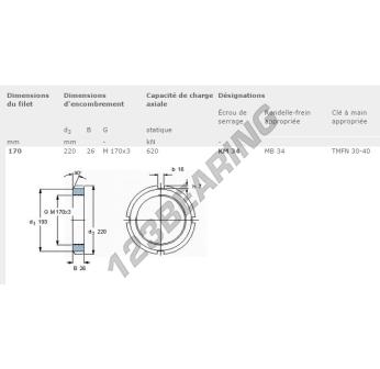 This lock nut KM34-SKF with an inside diameter of 170mm, an outside diameter of 220mm and a thickness of 26mm.