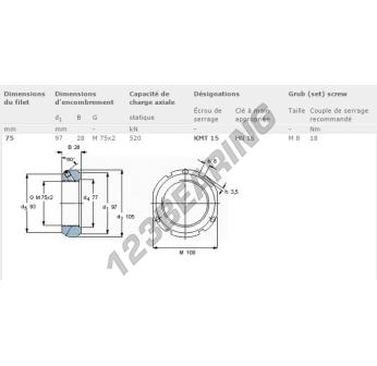 This lock nut KMT15-SKF with an inside diameter of 75mm, an outside diameter of 97mm and a thickness of 28mm.