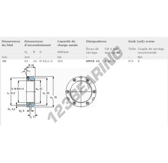 This lock nut KMTA10-SKF with an inside diameter of 50mm, an outside diameter of 63mm and a thickness of 24mm.