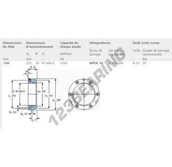 This lock nut KMTA36-SKF with an inside diameter of 180mm, an outside diameter of 215mm and a thickness of 32mm.