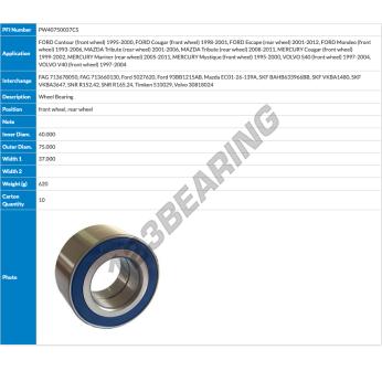 The Deep Groove Ball Bearing - Double Rows, known as PW40750037CS-PFI PFI, has an inner diameter of 40 mm, an outer diameter of 75 mm and a thickness of 37 mm.