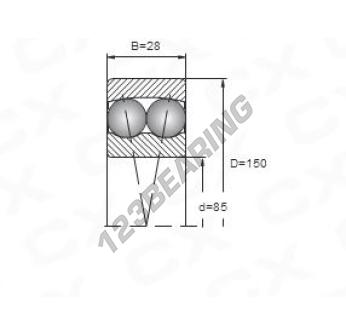 The Deep Groove Ball Bearing, known as 1217 Generic, has an inner diameter of 85 mm, an outer diameter of 150 mm and a thickness of 28 mm.