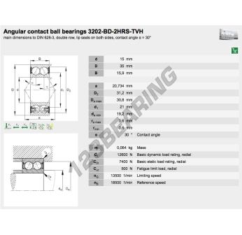 The Deep Groove Ball Bearing, known as 3202-BD-2HRS-TVH-FAG FAG, has an inner diameter of 15 mm, an outer diameter of 35 mm and a thickness of 15.9 mm.