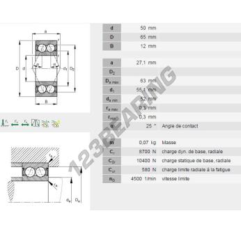 The Deep Groove Ball Bearing, known as 3810-B-2RSR-TVH-INA INA, has an inner diameter of 50 mm, an outer diameter of 65 mm and a thickness of 12 mm.