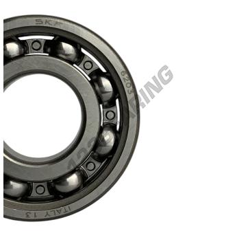 The Deep Groove Ball Bearing, known as 6203-SKF SKF, has an inner diameter of 17 mm, an outer diameter of 40 mm and a thickness of 12 mm.