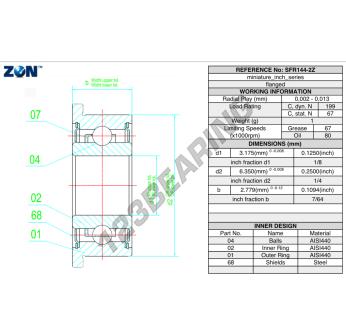 The Deep Groove Ball Bearing, known as SFR144-2Z-ZEN ZEN, has an inner diameter of 3.2 mm, an outer diameter of 6.4 mm and a thickness of 2.8 mm.