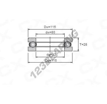 The Thrust Ball Bearing, known as 51216 Generic, has an inner diameter of 80 mm, an outer diameter of 115 mm and a thickness of 28 mm.