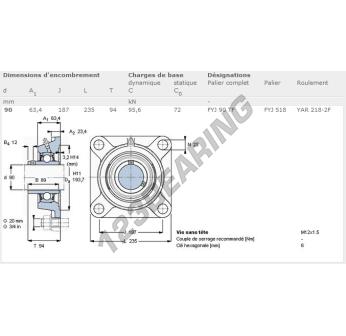 The Housed Bearing - 4 Bolts known as FYJ90-TF-SKF SKF has a shaft diameter of 90 mm and a fixing spacing of 187 mm. This part number is produced in cast iron and the tightening type is .