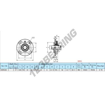 The Housed Bearing - 4 Bolts known as UCFC203-INOX Generic has a shaft diameter of 17 mm and a fixing spacing of 55.1 mm. This part number is produced in STAINLESS STEEL and the tightening type is .