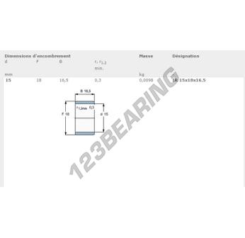 The Bearing Inner Race known by the reference IR15X18X16.5-SKF SKF has an inside diameter of 15 mm, an outside diameter of 18 mm and a length of 16.5 mm. It is manufactured in .