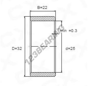 The Bearing Inner Race known by the reference IR25X32X22 Generic has an inside diameter of 25 mm, an outside diameter of 32 mm and a length of 22 mm. It is manufactured in .