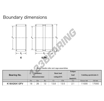 The Needle Roller And Cage Assemblies, known as K18-26-12-FV-JTEKT JTEKT, has an inner diameter of 18 mm, an outer diameter of 26 mm and a thickness of 12 mm.
