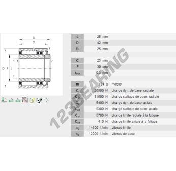 The Needle Roller Bearing, known as NKIB5905-INA INA, has an inner diameter of 25 mm, an outer diameter of 42 mm and a thickness of 25 mm.