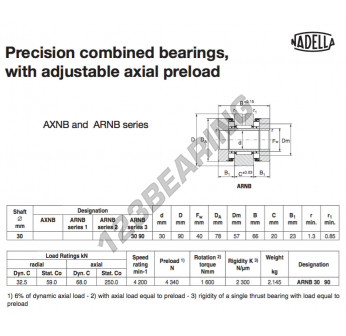 The Other Bearing, known as ARNB3090-NADELLA NADELLA, has an inner diameter of 30 mm, an outer diameter of 78 mm and a thickness of 66 mm.