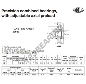 The Other Bearing, known as ARNBT60150-NADELLA NADELLA, has an inner diameter of 60 mm, an outer diameter of 105 mm and a thickness of 82 mm.