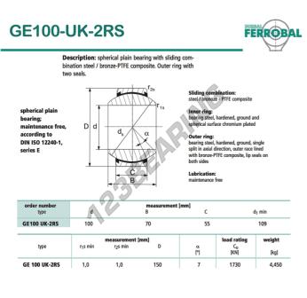 The Rod End Geew known as GE100-UK-2RS-DURBAL DURBAL has an inside diameter of 100 mm, an outside diameter of 150 mm and a thickness of 55 mm.