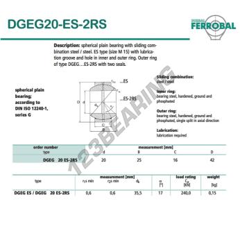 The Rod End Geg known as DGEG20-ES-2RS-DURBAL DURBAL has an inside diameter of 20 mm, an outside diameter of 42 mm and a thickness of 16 mm.