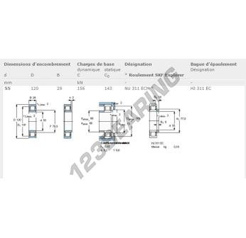 The Roller Bearing, known as NU311-ECM-SKF SKF, has an inner diameter of 55 mm, an outer diameter of 120 mm and a thickness of 29 mm.