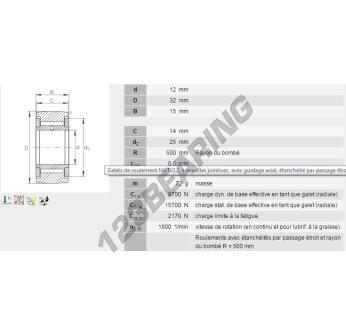 The Yoke Type Track Roller, known as NATV12-INA INA, has an inner diameter of 12 mm, an outer diameter of 32 mm and a thickness of 14 mm.